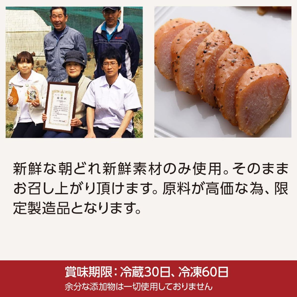 宮崎地鶏ささみくんせい通販限定はブランド地鶏みやざき地頭鶏(じとっこ)を使用しています。宮崎地鶏ささみくんせいのみやざき地頭鶏とは宮崎県と鹿児島県の旧島津領地で飼育されてきた鶏で農家さんが献上した事から命名されたそうです。品質や土壌、環境の改良を加えのびのび育ったみやざき地頭鶏を使用した宮崎地鶏ささみくんんせい。高級品として大切な方への贈り物などに利用頂いています。