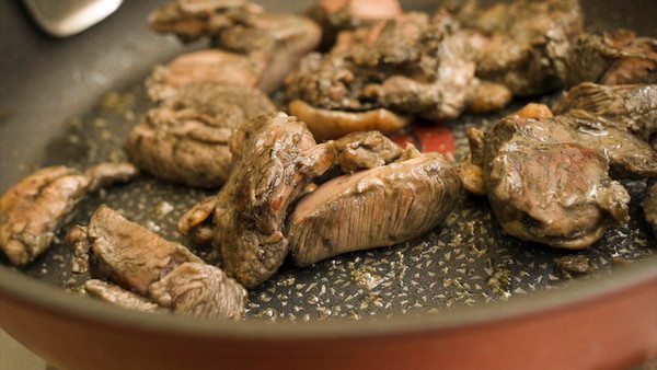 鶏炭火焼レアーを調理する場合、フライパンを使うのがもっとも手軽です。少し熱したフライパンに鶏炭火焼レアーをそのまま入れて、片面を焼き上げます。