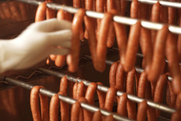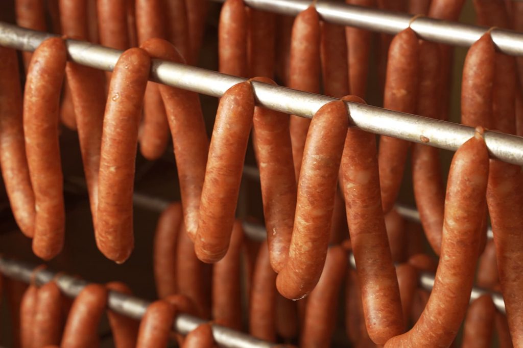 1983年に創業したスモーク・エースは、手造り燻製ひとすじの専門店。衛生管理を徹底した工房で、職人がウィンナーを一本一本丁寧に仕上げ、自社のスモーカーでじっくりと燻しています。